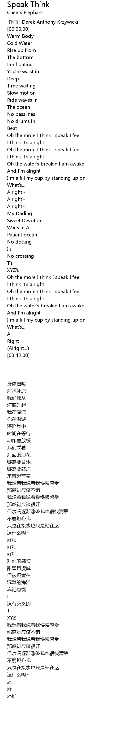 | [01:59.50] | Oh the more I think I speak I feel |