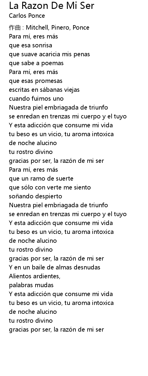 | Song | La Razon De Mi Ser |