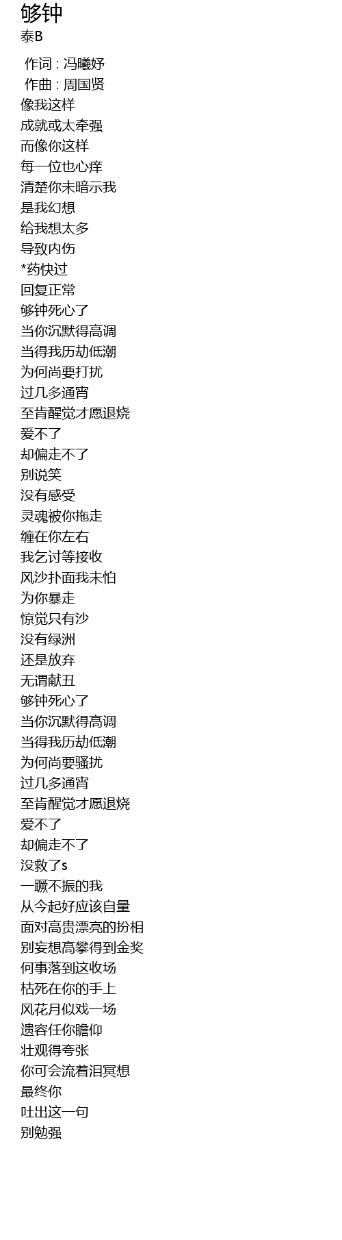 | [00:43.014] | gòu zhōng sǐ xīn le |
