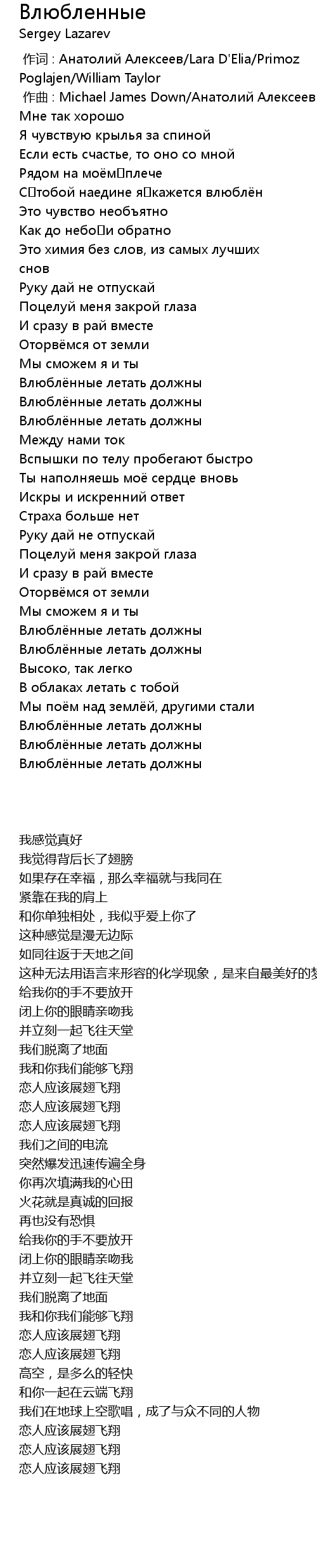 [00:00.00] 作词 : Анатолий Алексеев/Lara D'Elia/Primoz Poglajen/William Taylor