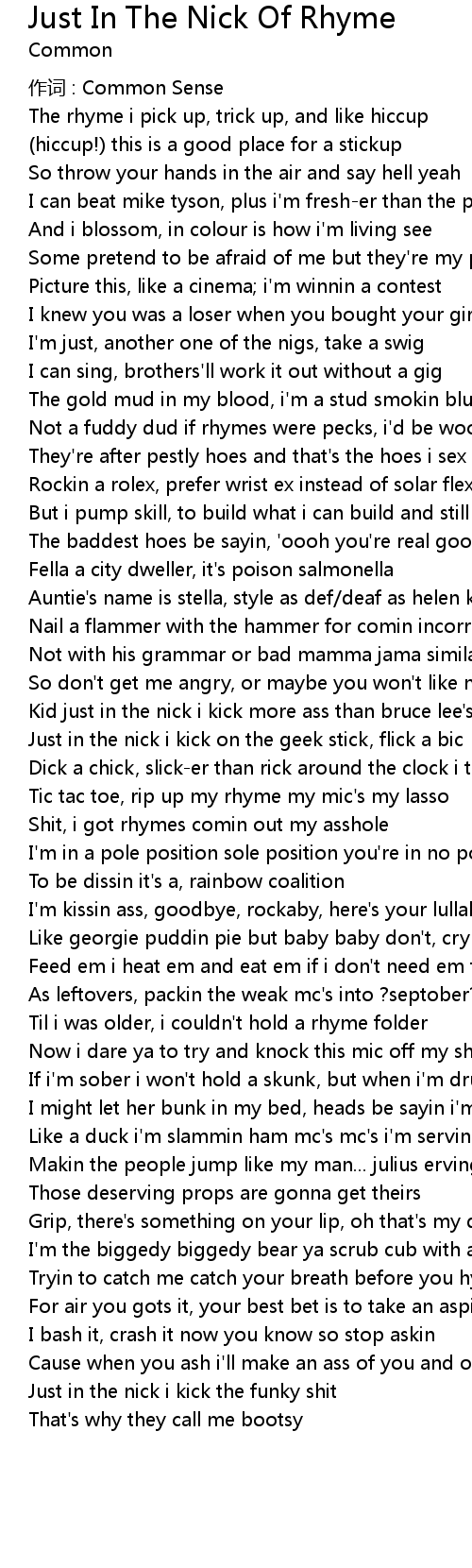 | Not a fuddy dud if rhymes were pecks, i' d be woody wood | |
