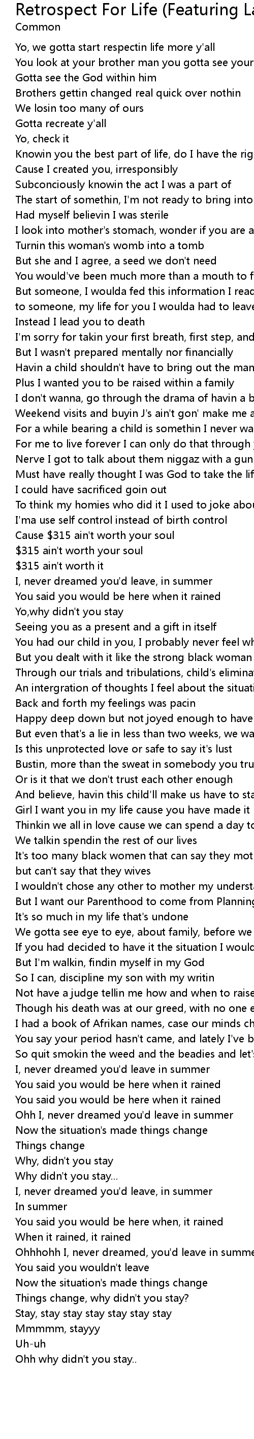 Ohhhohh I, never dreamed, you'd leave in summer |