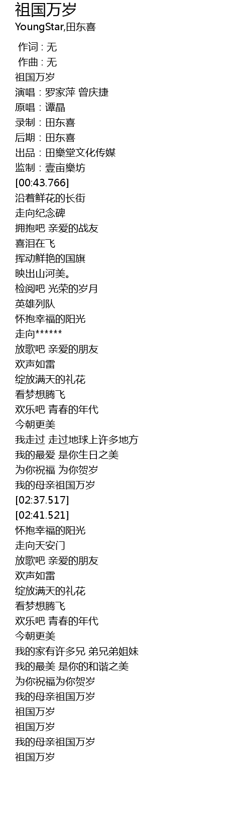 | [03:58.520] | 我的母亲祖国万岁 |