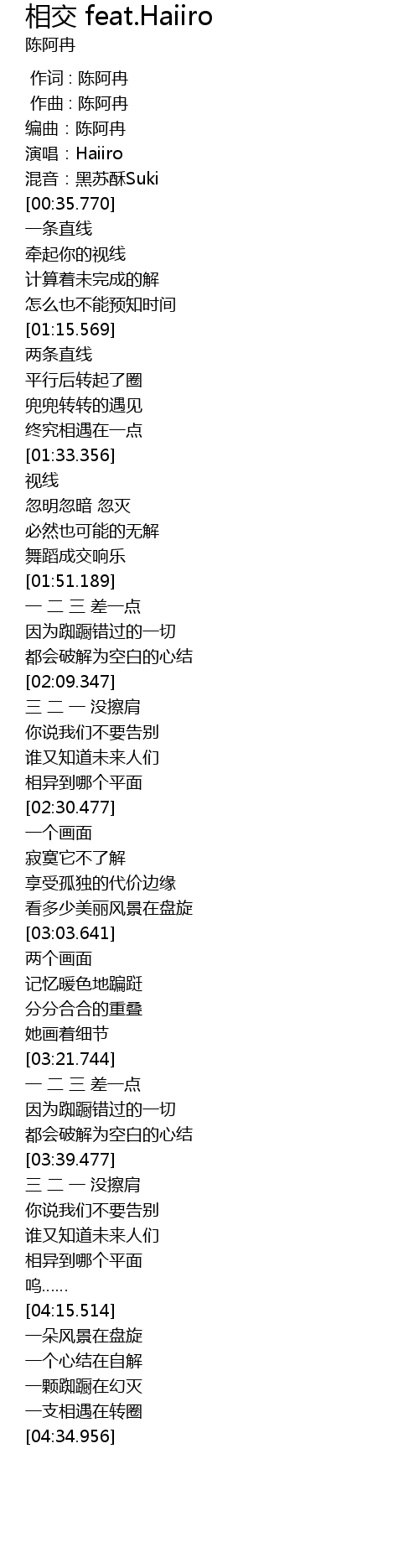 | [03:35.119] | dōu huì pò jiě wèi kòng bái de xīn jié |