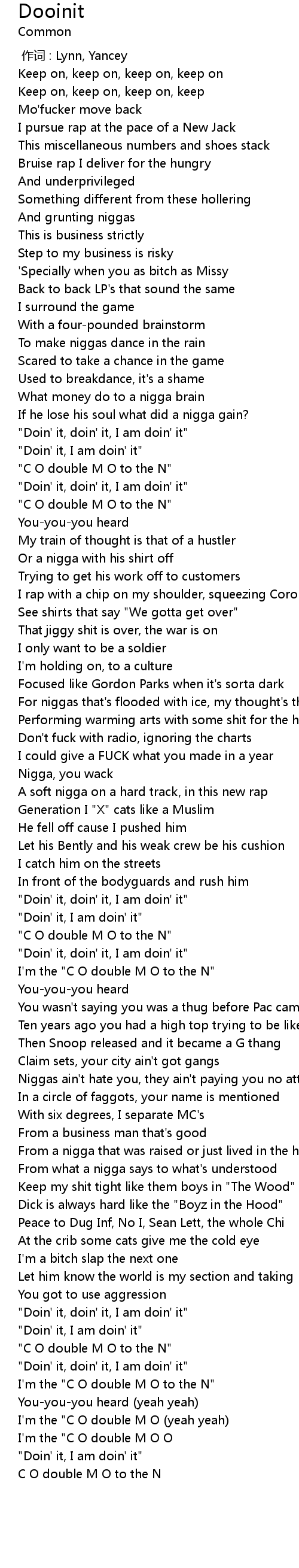 | [01:54.17] | " Doin' it, doin' it, I am doin' it" |