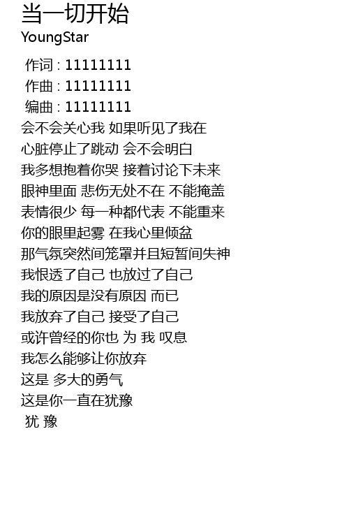 | [00:00.00] | 作词 : 11111111 |