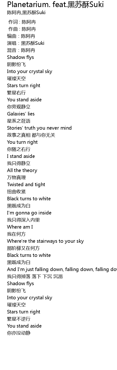| [02:25.475] | 我只得掉落 落下 下沉 沉溺 |