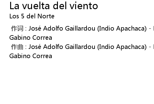 | [00:00.00-1] | zuò qǔ : José Adolfo Gaillardou Indio Apachaca Francisco Gabino Correa |