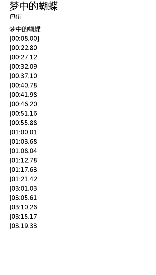 | [02:01.29][00:22.80] | 梦中的蝴蝶它在飞 |