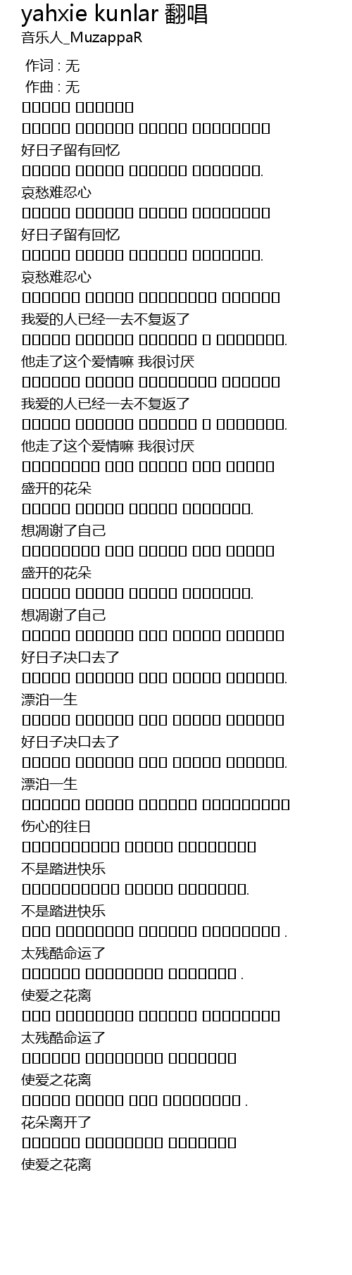 | Song | yahxie kunlar 翻唱 |