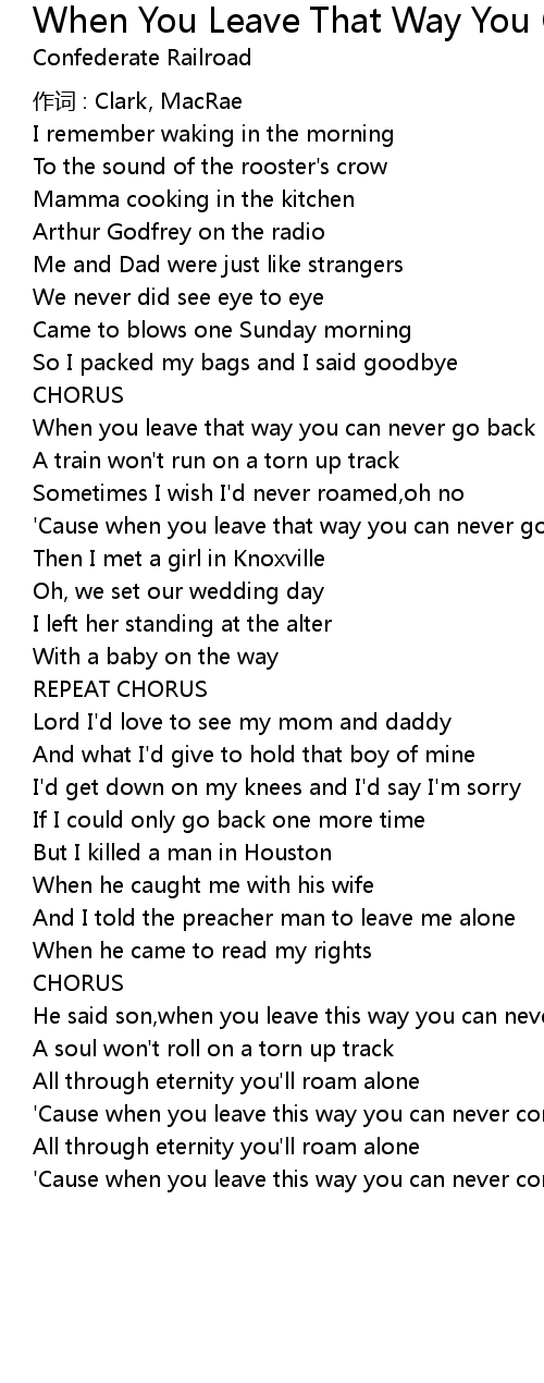 | Song | When You Leave That Way You Can Never Go Back |