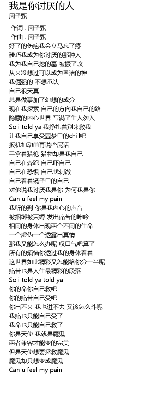 | [01:10.615] | duì tā shuō wǒ tǎo yàn wǒ shì nǐ wèi hé wǒ shì nǐ |