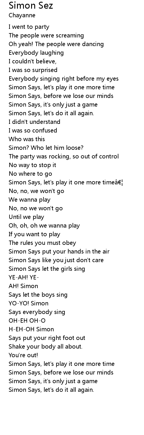 | Simon Says, let' s play it one more time | |