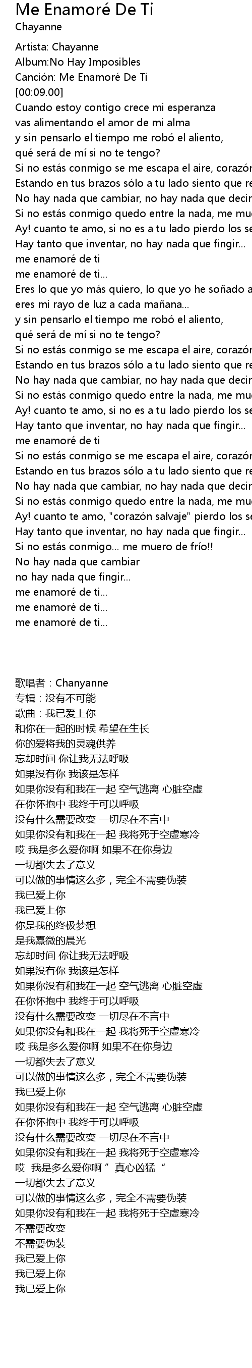 | [02:51.33] | Si no esta s conmigo se me escapa el aire, corazo n vaci o. |
