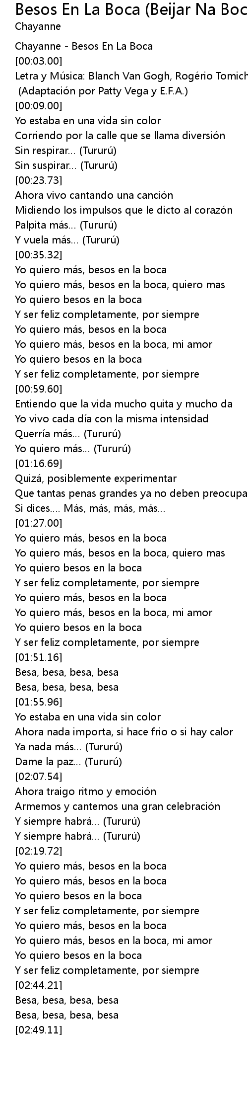 | [02:32.20] | Yo quiero más, besos en la boca |