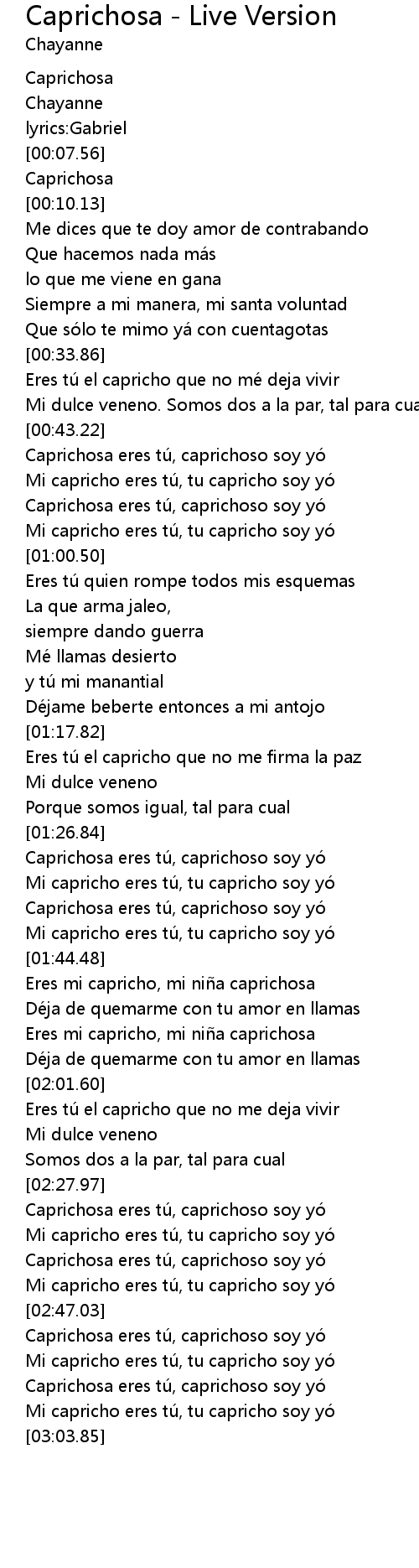 | [02:59.77] | Mi capricho eres tu, tu capricho soy yo |