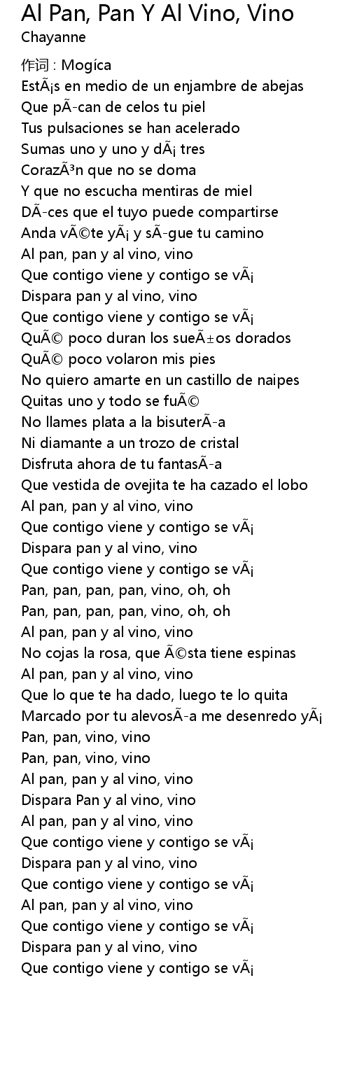 | Pan, pan, pan, pan, vino, oh, oh | |