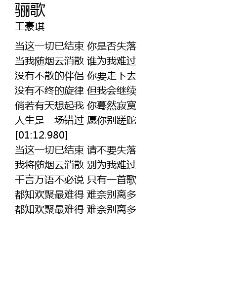 | [01:40.834] | 千言万语不必说 只有一首歌 |