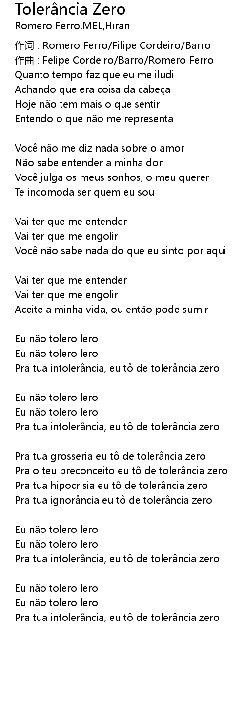 | Pra tua hipocrisia eu tô de tolerância zero | |