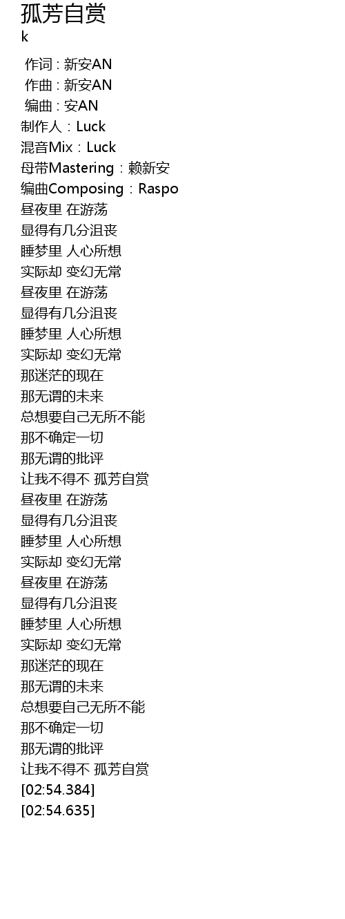 | [02:25.807] | 让我不得不 孤芳自赏 |