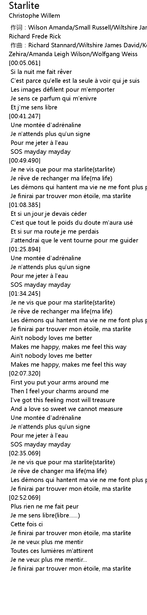 | [03:20.093] | Je finirai par trouver mon e toile, ma starlite |