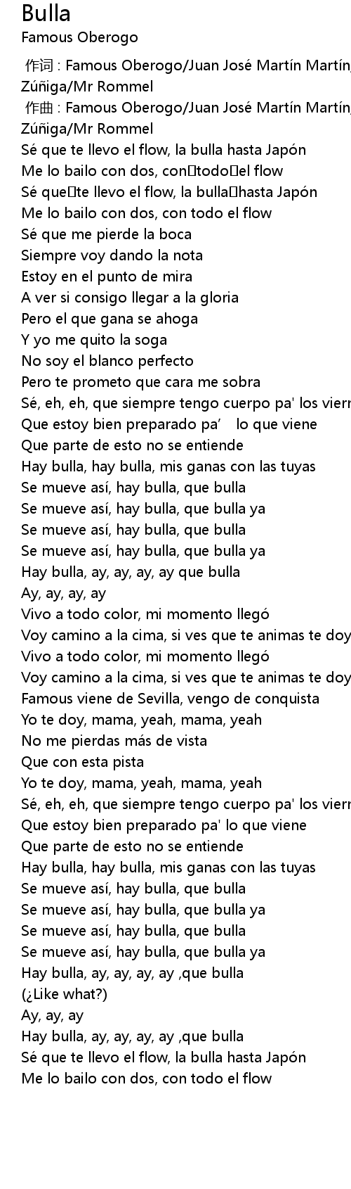 | [02:38.22] | Hay bulla, ay, ay, ay, ay , que bulla |