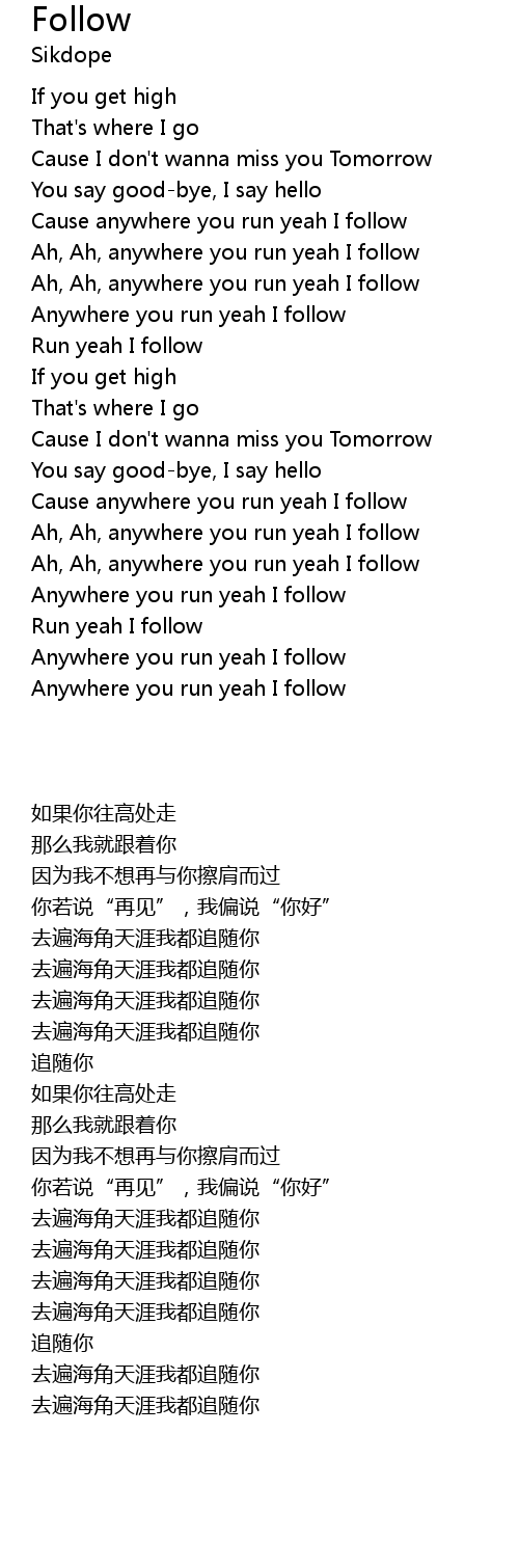| [00:45] | Ah, Ah, anywhere you run yeah I follow |