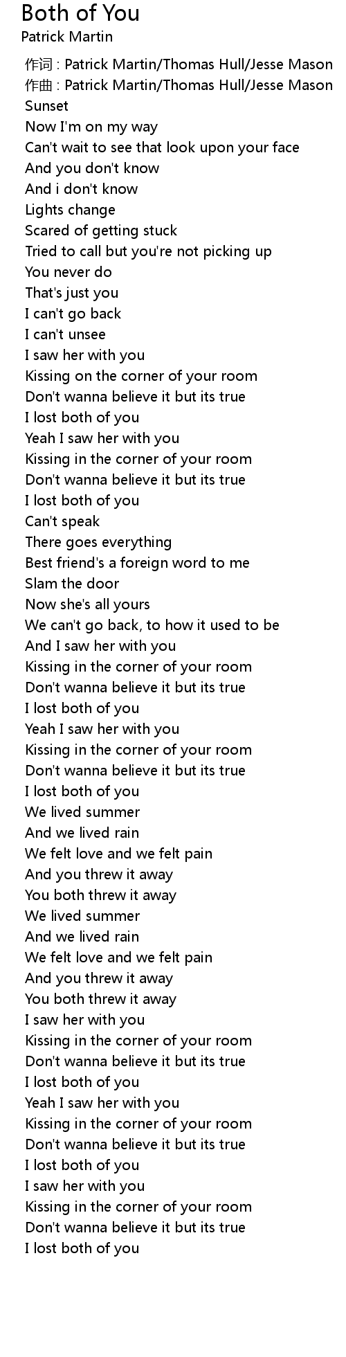 | [00:00.000] | 作词 : Patrick Martin/Thomas Hull/Jesse Mason |