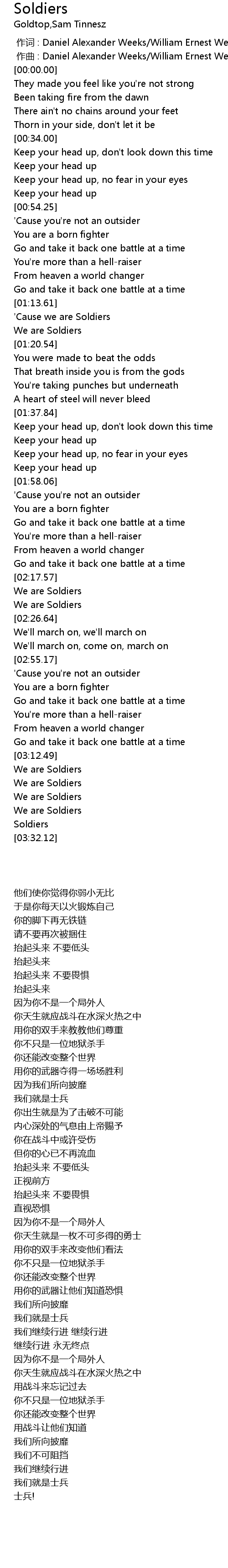 | [00:00.00] | zuò cí : Daniel Alexander Weeks William Ernest Weeks Sam Tinnesz |