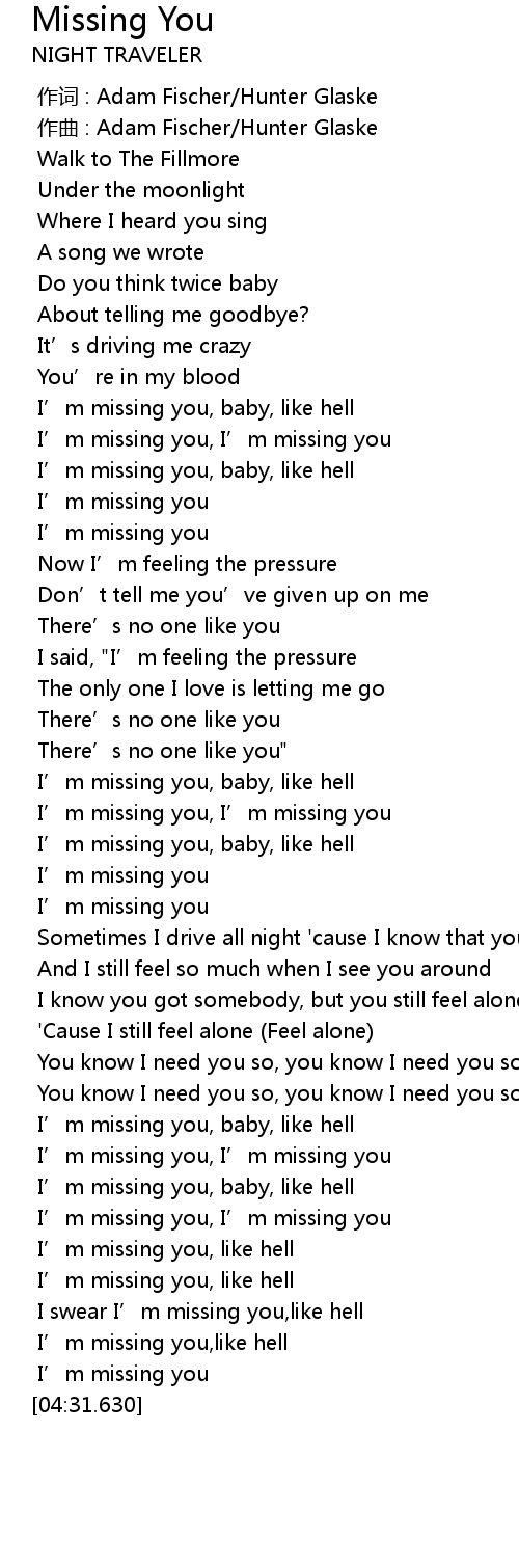 | [01:18.369] | I' m missing you, I' m missing you |