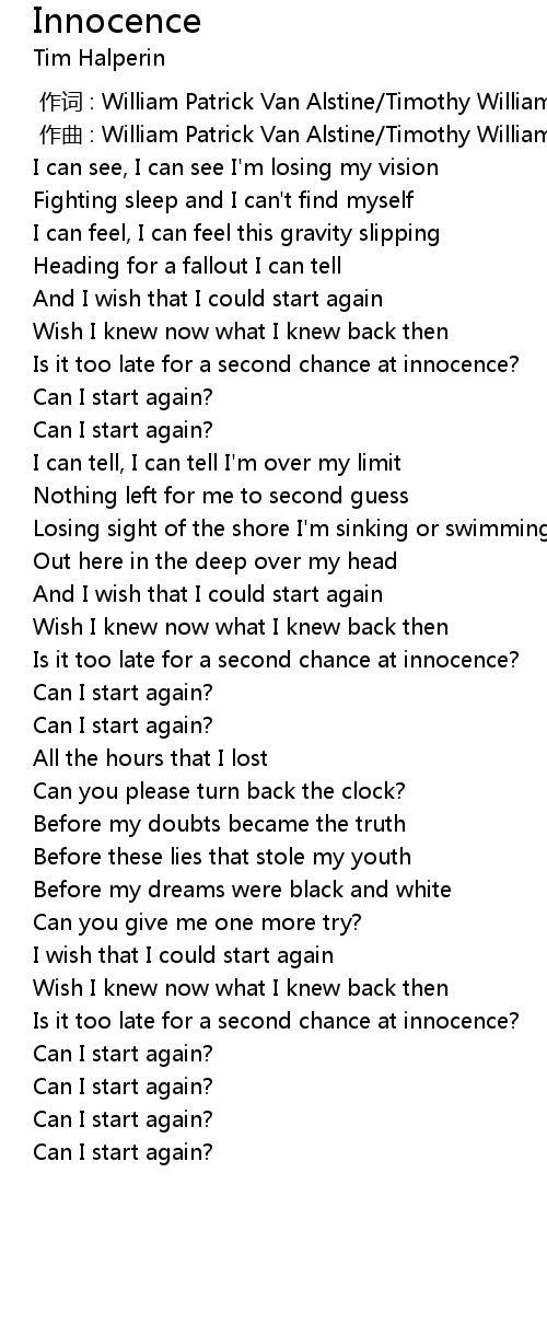 | [00:00.00] | 作词 : William Patrick Van Alstine/Timothy William Halperin |
