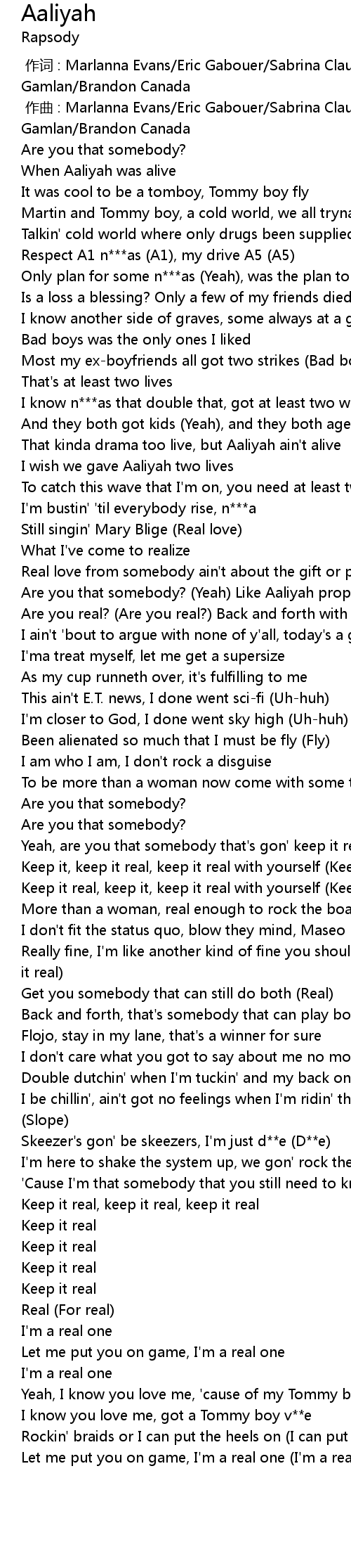 | [00:47.895] | That kinda drama too live, but Aaliyah ain't alive |