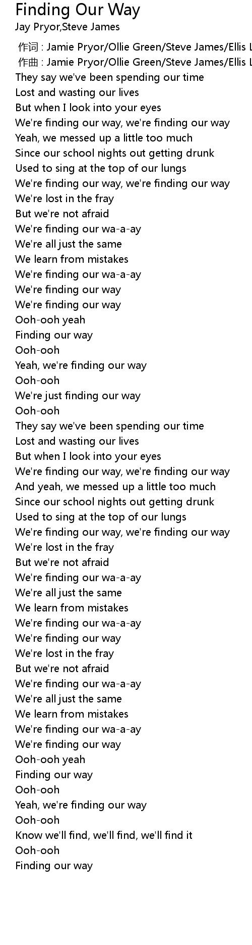 | [00:45.57] | We' re finding our way |
