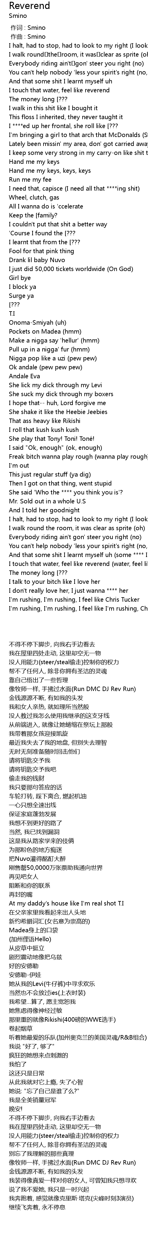 | [02:08.61] | I touch that water, feel like reverend (water, feel like rev) |