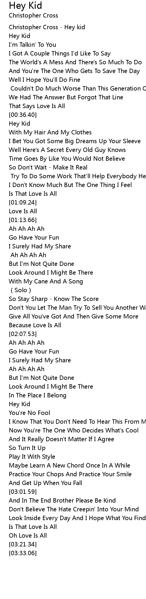 | [00:00.00] | Christopher Cross Hey kid |