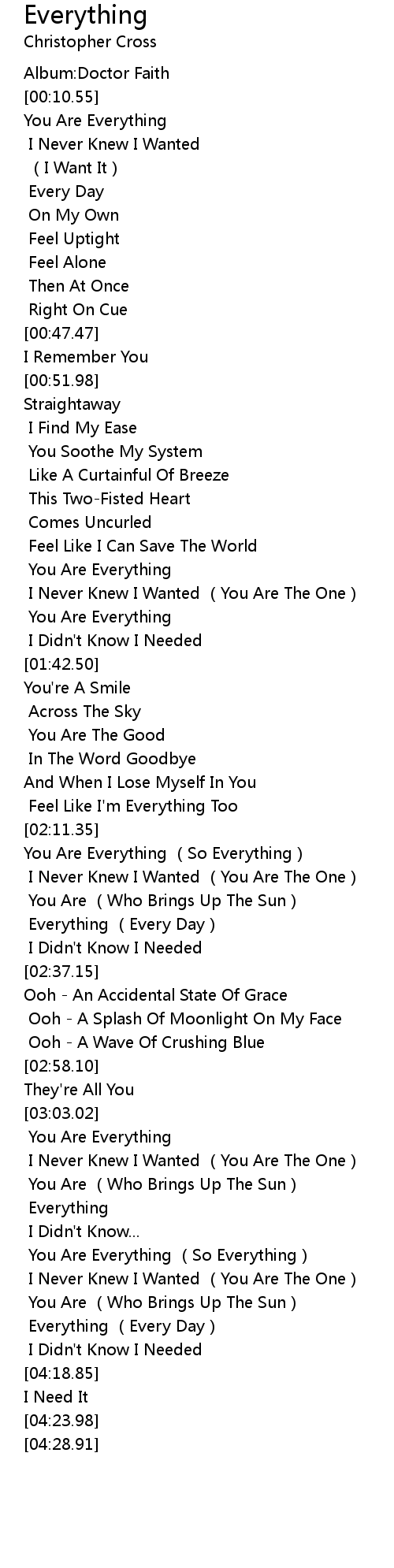 | [04:10.54] | Everything (Every Day) |