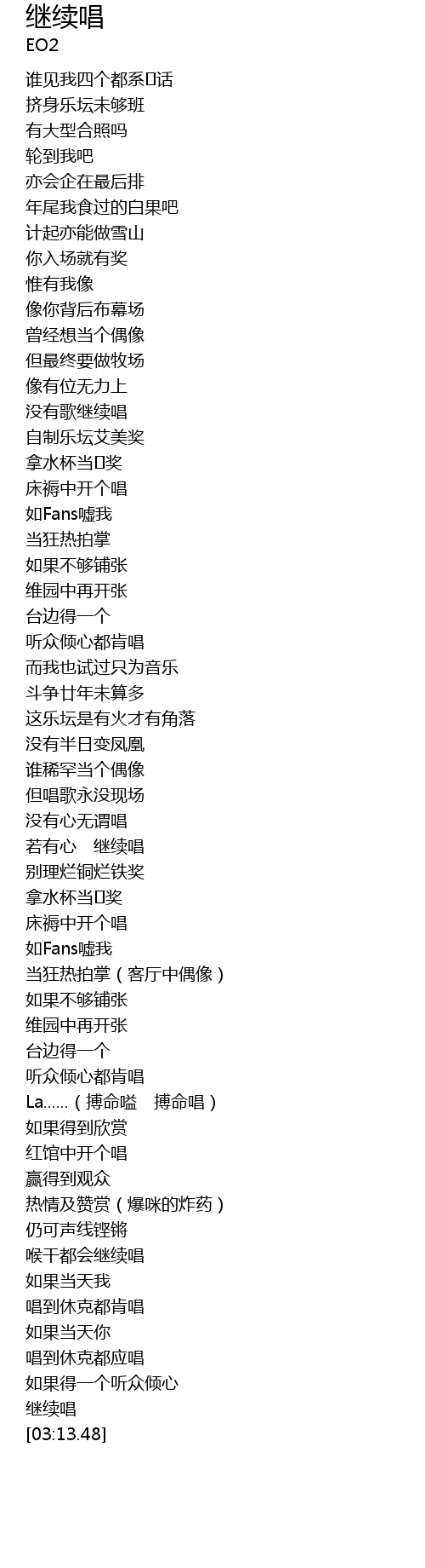 | [02:25.45] | La......(搏命嗌 搏命唱) |