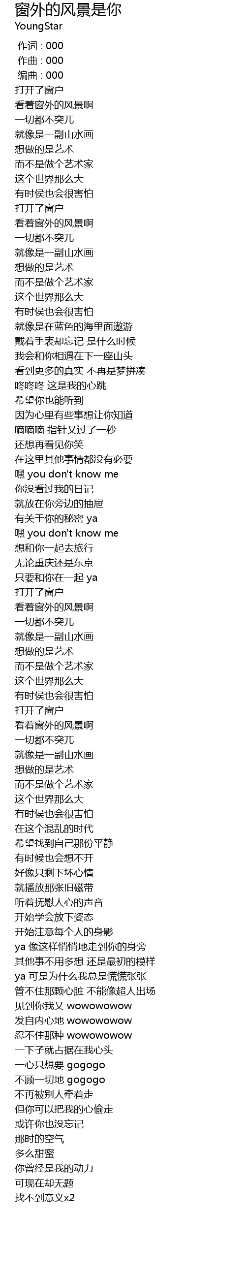 | [00:00.000] | 作词 : 000 |