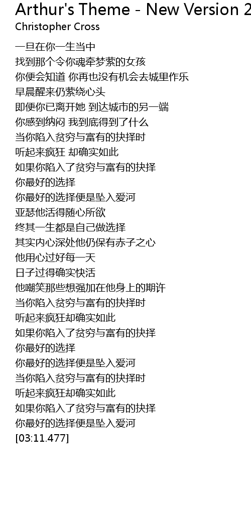 | Song | Arthur's Theme - New Version 2008 |
