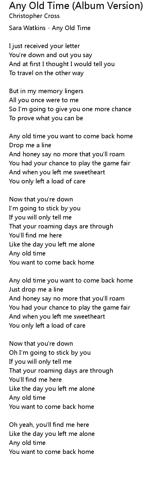 Any old time you want to come back home |