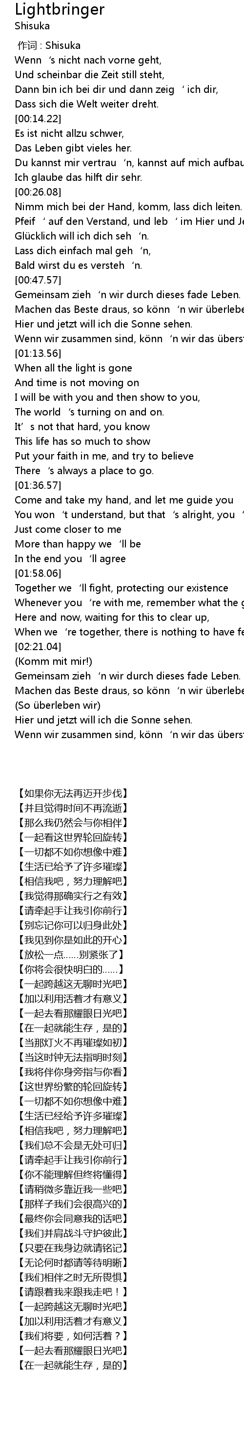 | [02:32.38] | Hier und jetzt will ich die Sonne sehen. |