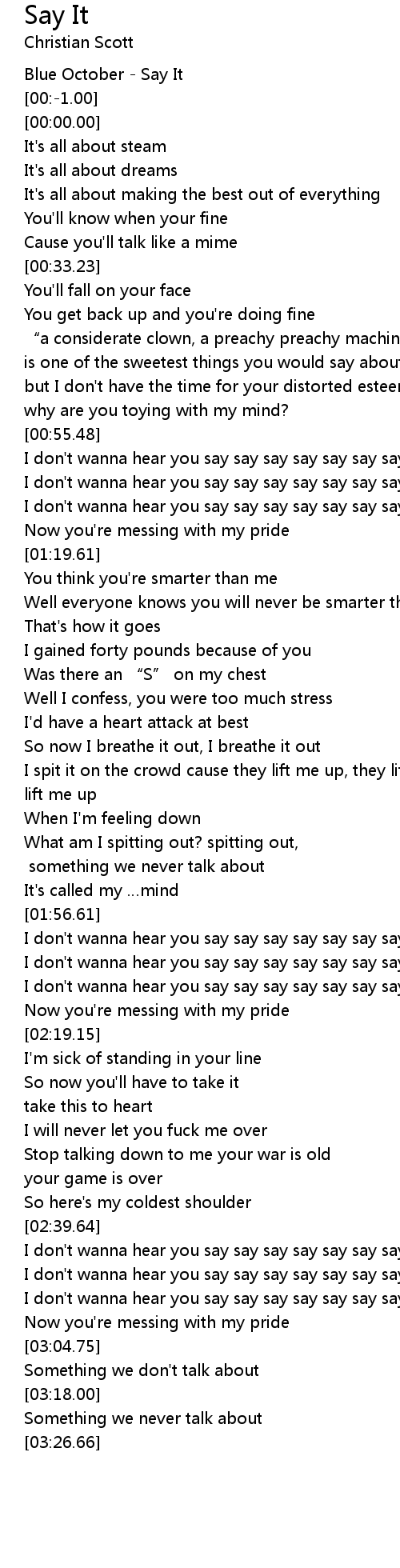 | [02:51.11] | I don't wanna hear you say say say say say say say say it |