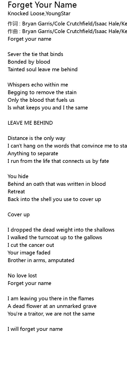| 作词 : Bryan Garris/Cole Crutchfield/Isaac Hale/Kevin Otten/Kevin Kaine | |