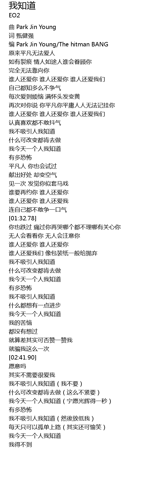 | [00:22.61] | 编 Park Jin Young/The hitman BANG |