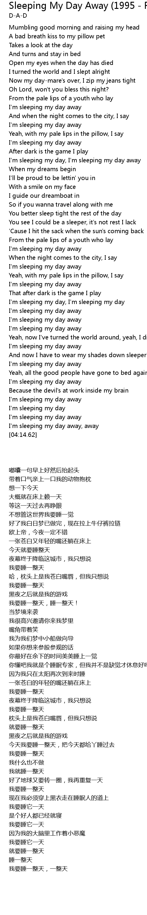 Sleeping My Day Away (1995 - Remaster) Lyrics