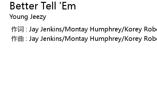 | [00:00.00-1] | 作曲 : Jay Jenkins/Montay Humphrey/Korey Roberson/Dennis Martin |