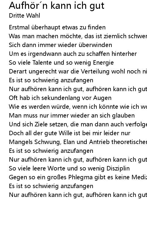 | Nur aufh ren kann ich gut, aufh ren kann ich gut |