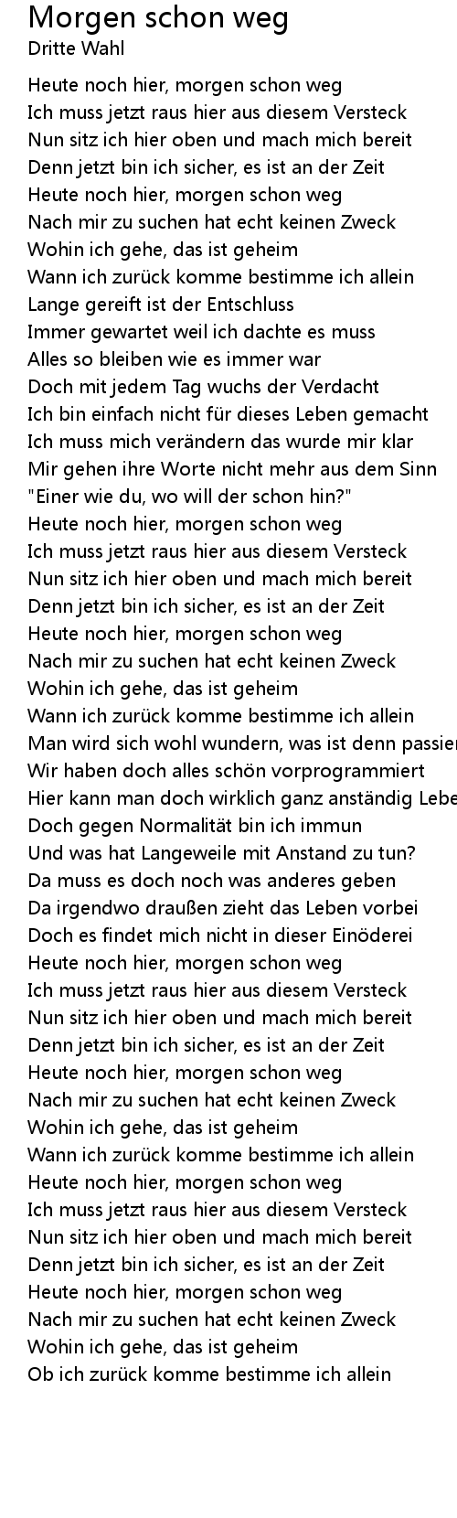 | Ich muss jetzt raus hier aus diesem Versteck | |