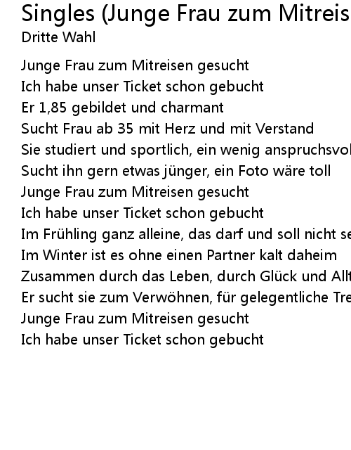 | Song | Singles (Junge Frau zum Mitreisen gesucht) |