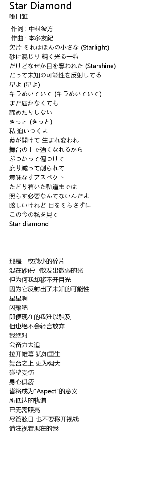 | [00:30.470] | だけどなぜか目を奪われた (Starshine) |